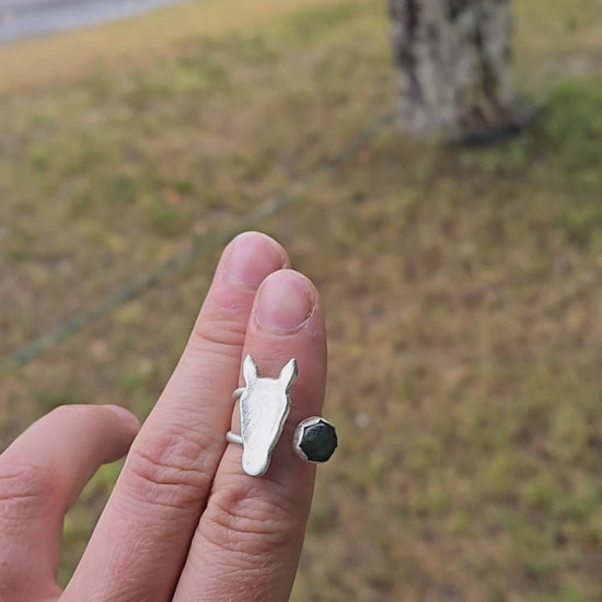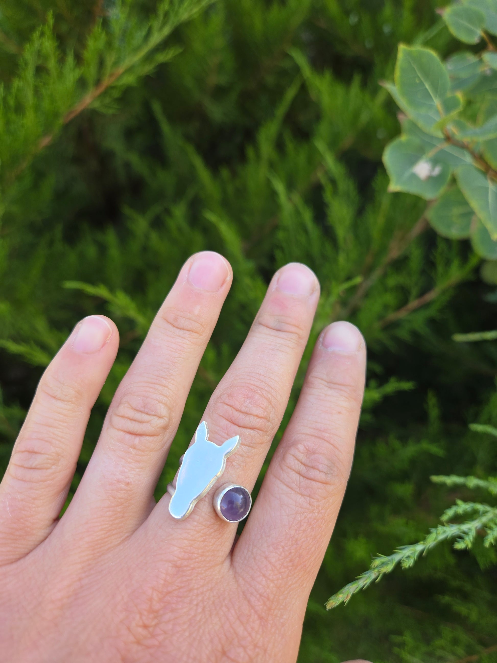 This hands down my favorite ring as a horse girl! It's simple charm makes it perfect for every day wear. The gap design allows some adjustability in size so you can wear it on any finger. The rings are made to order with either moss agate or amethyst. Please note that coloring may vary from what is pictured. If you have a preference, reach out and I can try to accommodate.