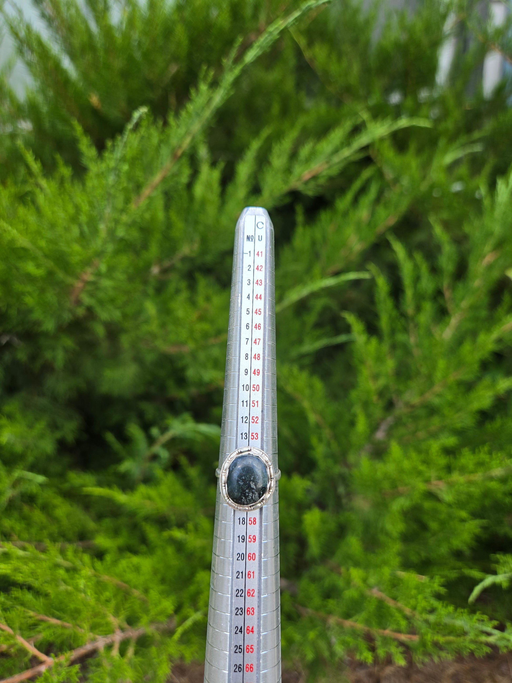 This 7.25 Jasper ring is one I debated keeping for myself! The dark green stone reminds me of our woods and how lovely fall is. Around the ring, is a simple border that makes it pop just a little more.